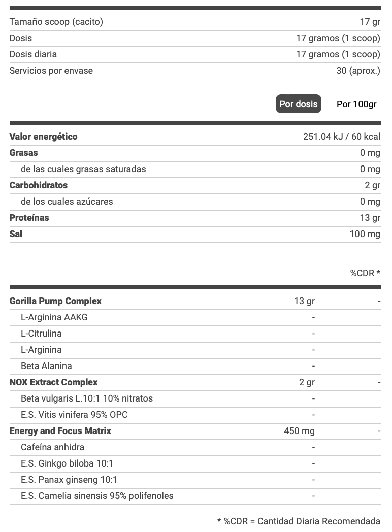 Complejo Gorilla Pump: 13g de Poder Vascular